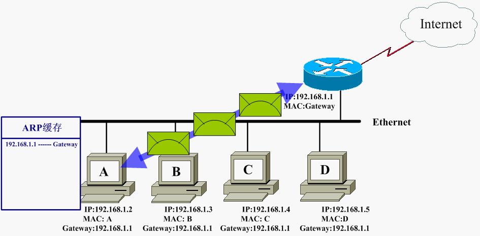 ARP协议是“Address Resolution Protocol”(地址解析协议)的缩写。在局域网中,网络中实际传输的是“帧”,帧里面是有目标主机的MAC地址的。在以太网中,一个主机和另一个主机进行直接通信,必须要知道目标主机的MAC地址。但这个目标MAC地址是如何获得的呢?它就是通过地址解析协议获得的。所谓“地址解析”就是主机在发送帧前将目标IP地址转换成目标MAC地址的过程。ARP协议的基本功能就是通过目标设备的IP地址,发送ARP请求查询目标设备的MAC地址,以保证通信的顺利进行。